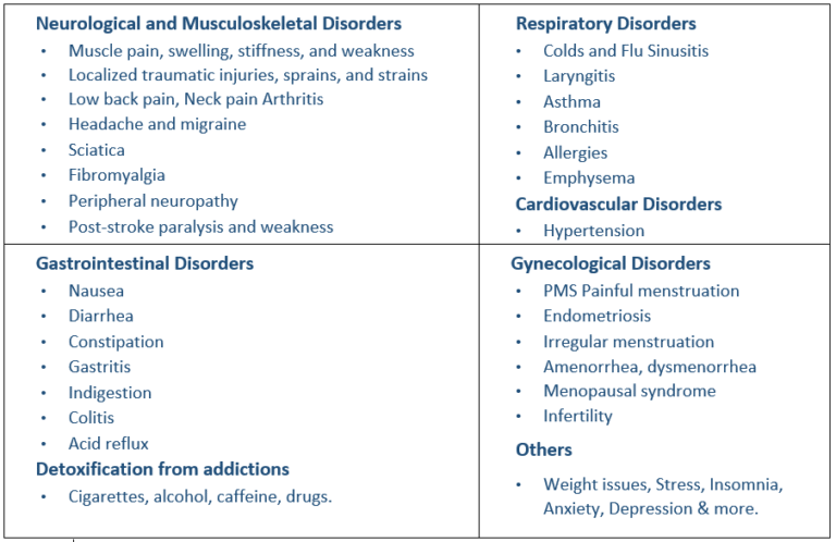 At HH Integrated Healthcare, we provide a wide range of safe and effective acupuncture treatments in combination with oriental medicine that negate the need for high-risk surgeries, ranging from A to Z: arthritis, asthma, pre-post cancer wellness, diabetes complication, stroke, dementia, gastrointestinal problems, infertility, orthopedics conditions like; knee and hip replacements, herniated disc, sciatica, lower back pain, spondylosis, degenerative disc disease, disc protrusion and many more…